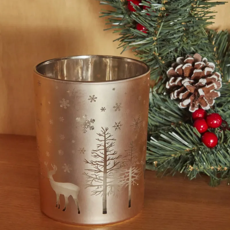 Karaca New Year Christmas Helena Glass Candle Holder, 10cmx12.5cm, Gold