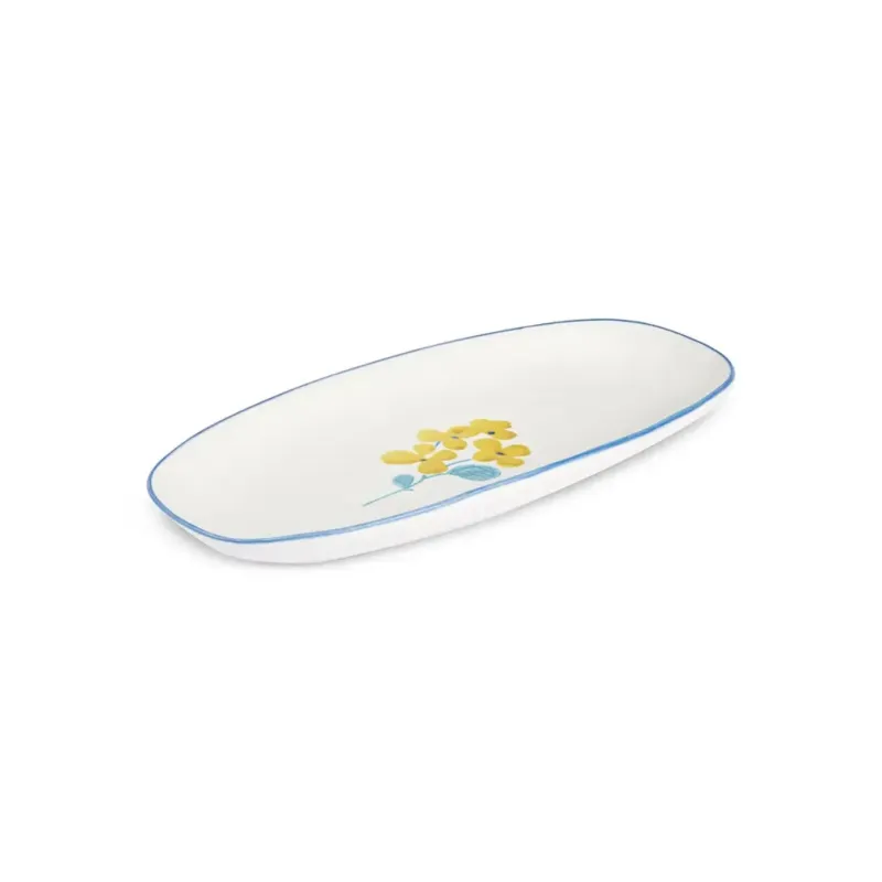 With its organic shape and delightful yellow flower motifs, these platters radiate timeless elegance and natural allure. Whether serving appetizers, mains, or desserts, the Primavera Stoneware collection adds a touch of refinement to any occasion.