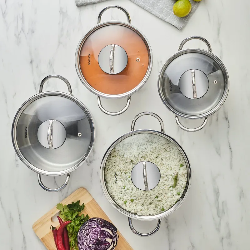 Karaca Sakura Powersteel 8-Piece 316+ Stainless Steel Induction Cookware Set, Silver