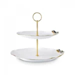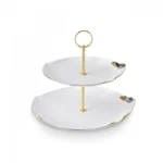 Karaca X Müge Anlı Bone China 2-Tier Cake Stand, 27cm, Gold White