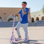 Are you struggling to find the ideal gift for your child? We highly recommend this scooter to you! This 2 wheel scooter features 3 adjustable heights, which makes it accommodate to users at different age stages, such as teens and adults. The wide deck is crafted with a frosted surface to increase friction and offer riders better control. Also, the LED flashing wheels are combined with anti-shock suspensions for more comfortable riding, and they are also wear resistant and suitable for various road surfaces. The aluminium alloy frame is lightweight and sturdy. And the folding and unfolding process is easy, requiring no tools. If you are looking for a kid scooter like this, do not hesitate to place an order! Height Adjustable Handlebar: The wide and anti-slip handlebar can be adjusted in 3 heights from 85 cm to 95 cm from the ground, which offers comfort for riders at different age stages, like teens and adults. This 2 wheel scooter is also a great gift for your kids as it can grow together with them. Tool-Free Folding and Easy Carrying: This lightweight scooter requires no assembly and all you need to do is unfold it, adjust to the desired height and secure it. The folding and unfolding process is effortless in seconds. And the scooter comes with a shoulder strap for more convenient carrying. Net weight: 4 kg. Designed with Safety and Comfort in Mind: The 54 cm x 11 cm deck is crafted with an anti-skid frosted surface, and it can support riders up to 220 lbs. The front and rear wheels are built with anti-shock suspensions so that you will feel less wobbling even on uneven sidewalks. Besides, the rear brake helps to stop the scooter quickly and easily. High Quality Light Up Wheels: The extra big PU-coated wheels (diameter: 20 cm) feature high rebound and outstanding wear resistance, which is suitable for all kinds of road surfaces. Moreover, these 2 LED flashing light up wheels need no batteries to add additional fun to kids’ rides. Durable and Sturdy Frame: This kick scooter is built with high quality aluminium alloy, which is lightweight but sturdy and rustproof. The stable kickstand can keep the 2 wheeled scooter upright while the rider is taking a break.