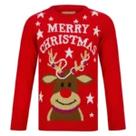 Kids Tangled Reindeer Christmas Jumper Red Rudolph Stars