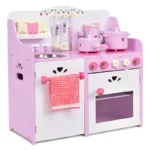 Color: Pink, white Material: Pine wood, MDF Size: 60 x 30 x 62 cm ( L x W x H ) Net weight: 10 kg Package includes: 1 x Kids toy kitchen set 1 x Assembly instruction