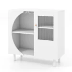 The open shelves with crescent-shaped baffles and high-quality tempered glass cabinet doors showcase a charming and stylish appeal. The cabinet with a large capacity can accommodate a coffee maker, toaster, coffee cups or other dishes. And the double-row wine glass rack can hold all your wine glasses. You can use this high-quality cabinet without worrying about its weight-bearing capacity. In addition, the cabinet comes with better craftsmanship. Its convenient handles and buffer hinges make it easy to reach your belongings. This classically designed storage cabinet is suitable for a variety of dining rooms, kitchens or living rooms. If you are looking for a sideboard like this, do not hesitate to place an order! Modern and Graceful Design: With its clean lines and simple design, this cabinet seamlessly blends in with your existing furniture. 2 open shelves with a crescent-shaped flap and a superior tempered glass door add a charming touch to any room. Whether you place it in the dining area, kitchen, or living room, this side cabinet is a practical and beautiful addition. Large Storage Space: Enjoy ample storage space with the spacious tabletop that provides enough room for your decorations or small appliances. The side cabinet with door can easily store your commonly used utensils, cups or pots, while the downward flap drawer is perfect for storing cutlery or other smaller tableware. Double-row Wine Glass Holder: Equipped with a double-row wine glass rack, this multifunctional cabinet effortlessly accommodates your glassware collection. The thoughtful design of the stemware holder allows for easy access to stored items while effectively preventing accidental tipping and potential damage to your glasses. Sturdy Structure and Raised Support Feet: Built with thick boards, this wine bar cabinet offers excellent durability and wear resistance. The safety anti-toppling devices ensure extra security for families with children or pets. Additionally, the stable support legs with an elevated design make it convenient to clean the space underneath the table.