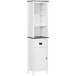 - Storage: Tall bathroom cabinet comes with three top shelves, drawer and bottom cupboard. A bathroom storage unit which offers plenty of room for toiletries, essentials and more. Adjustable shelf in upper space and inside cupboard.