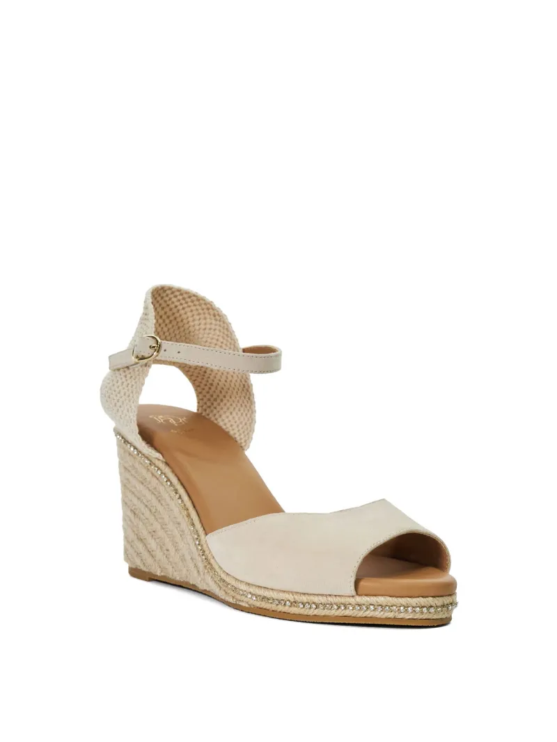 Immediately conjuring up holiday memories an espadrille sandal is a summer classic and our Koto wedges are designed for sun-soaked adventures. Crafted from buttery soft suede they have an open toe a buckled ankle strap and an espadrille wedge heel. Wear them with shorts and a tee or your favourite sun dress when the temperatures rise.
