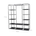 • Spacious & Organized: Measuring W 150 x D 45 x H 175 cm, it includes 1 adjustable hanging rod and 12 storage shelves, offering ample space for both hanging and folded clothes.