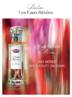 L’Eau Revee D’Aria is a unique collection of six fragrances, inspired by the dreams of the d’Ornano family. This scent features notes of spiced ginger and devilwood, creating a vivacious and joyful personality. Collaboration with artists transports us to a world of swirling dreams. Top notes: Bergamot, Mandarin, Ginger. Middle notes: Osmanthus, Blackcurrant, Nutmeg. Base notes: Vanilla, Benjoin, Patchouli.