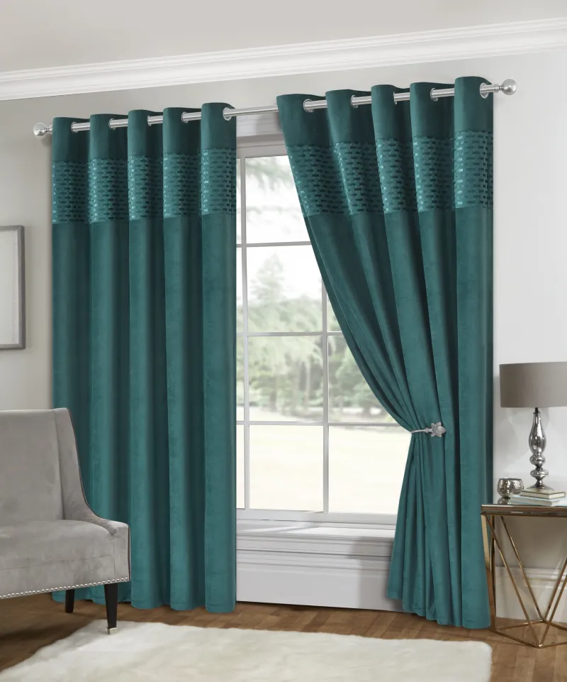 Lewis’s Sophia Cut Velvet Eyelet Curtains – Emerald Green
