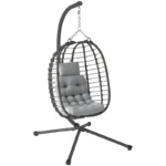 Light Grey Rattan Hanging Egg Chair with Cushion and Stand for Garden or Patio by Outsunny