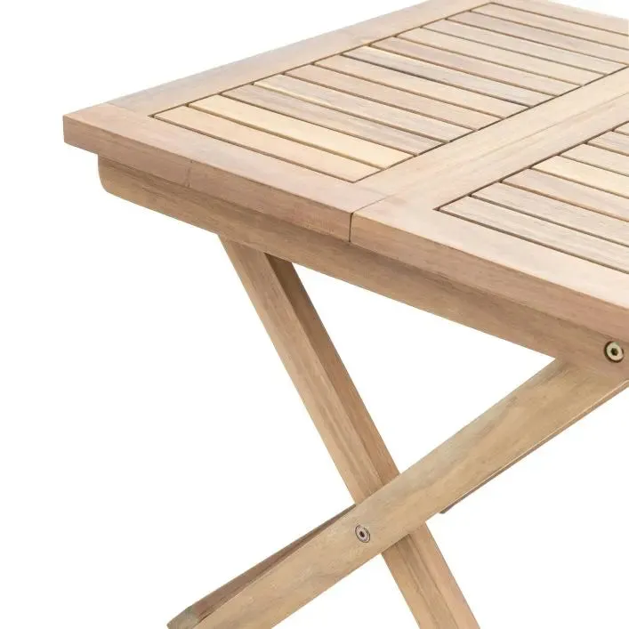 Simple and stylish this slatted top side table fold away for easy storage or transportation, perfect for a day out. Made from Acaiaca wood with a lovely finish. Coordinating folding chairs and dining table set available.