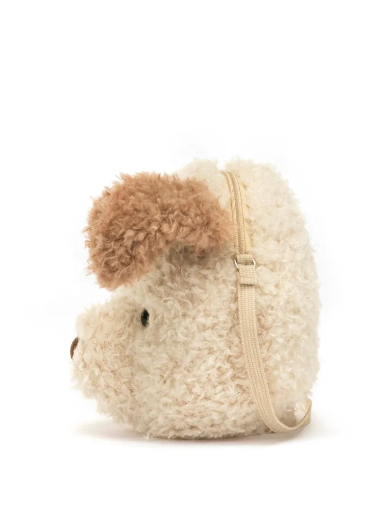 Little Pup Bag is a statement cutie in gorgeously scruffy butterscotch fur. With toffee fold ears, a black suedette nose and a webbed cross-body strap, this cotton-lined bag is ready for a walk.