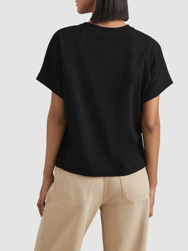 This midweight cotton T-shirt is elevated with a supremely soft finish. Raglan stitching features to the back of the sleeves for enhanced movement and a slouchy shape.100% cottonCrew neckline Raglan stitching Split hem