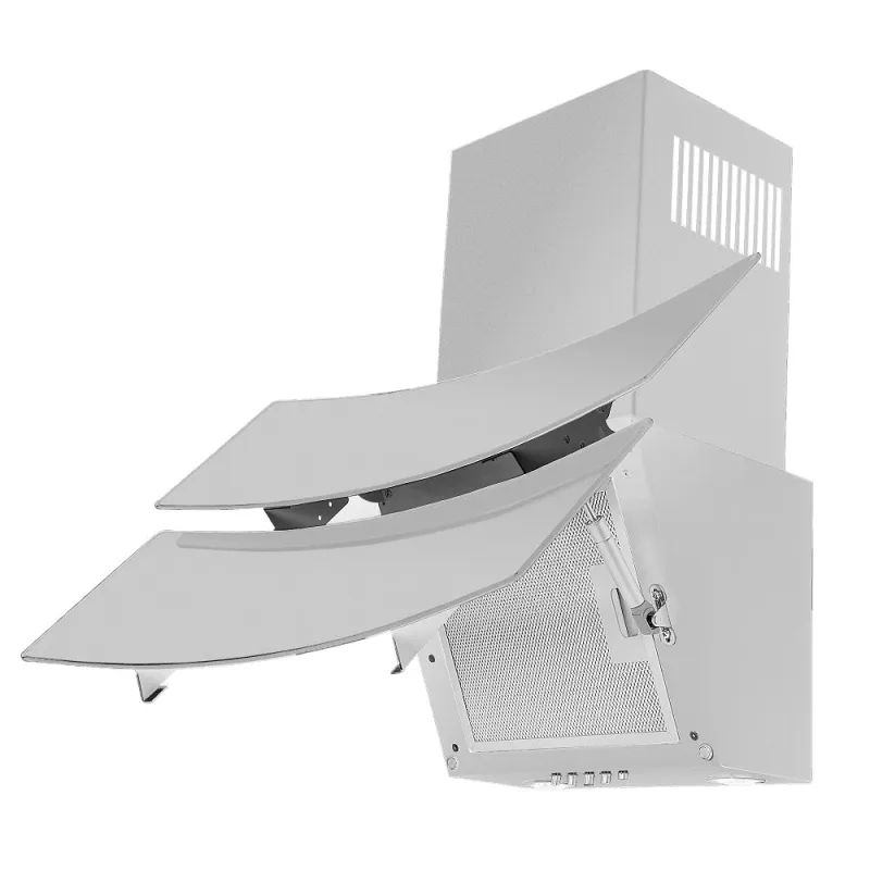 The Hubble is a budget angled cooker hood with two glass panels that curve seamlessly to give a designer extractor for minimal price.