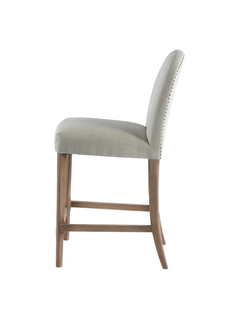 Maurice Beige Fabric Counter Stool With Brass Studs