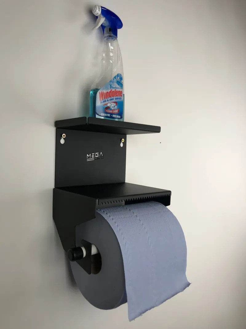Above the Blue Roll is two handy storage shelves. Store your extra cleaning supplies here such as spray bottles, soaps and more. A great choice for factories, healthcare environments or catering businesses. It allows you to condense your cleaning station into a single item!