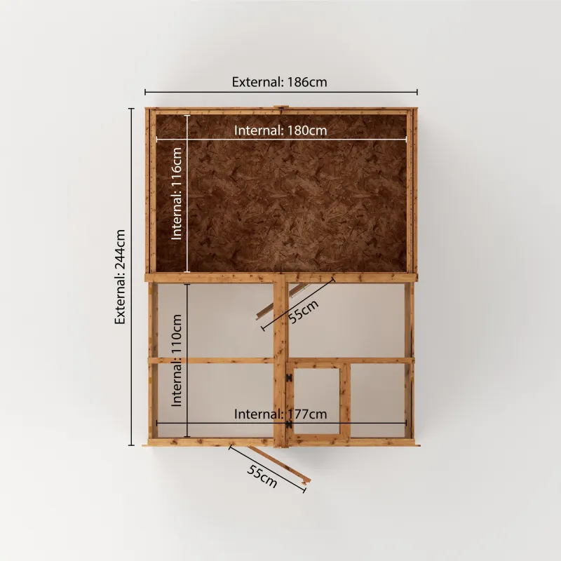 The walls of this greenhouse and shed are constructed using premium horizontal interlocking tongue and groove boards with a shiplap profile. The shiplap profile includes a protective and aesthetically pleasing lip to create a strong, weatherproof panel. Complete with thick wooden framing to support the cladding internally, this building offers a rigid and long-lasting structure. The glazing is made of UV resistant styrene, which allows maximum light into the greenhouse while being safe and shatterproof.