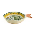 Mexican Hand Painted Green & Yellow Fish Dish, 14x19cm