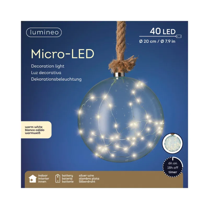Micro LED Ball Diameter 20cm Blue, Warm White 40 Lights