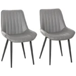 Mid Century Dining Chairs Set of 2, PU Leather Upholstered Side Chairs Seat for Kitchen Living Room with Metal Legs, Grey 2 Legs