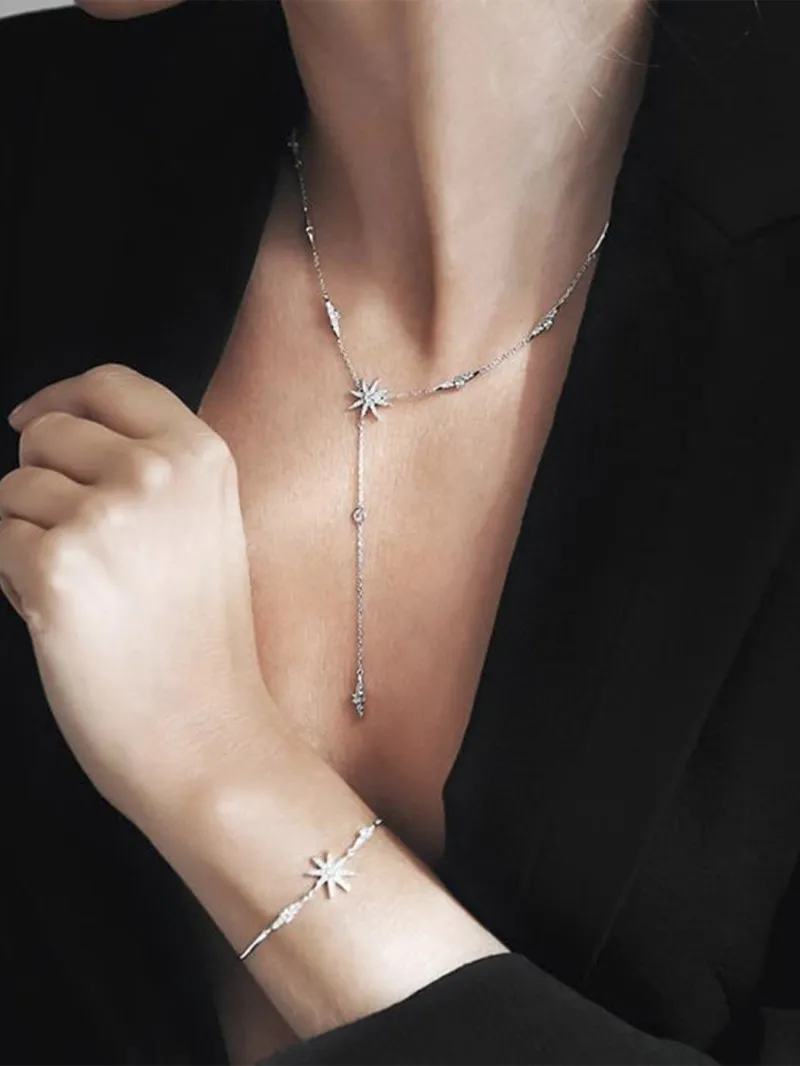 A starburst of exquisite sparkle lights up our eveningwear thanks to the Mimosa Drop Pendant Necklace from CARAT. An abiding piece for an eternal elegance, it’s dainty and graceful for a feminine nuance that also maintains an eye-catching attraction.