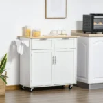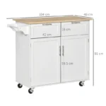 Modern Rolling Kitchen Island Storage Kitchen Cart Utility Trolley with Rubberwood Top, 2 Drawers, White Drawers