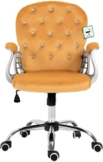 - This stylish office chair features a diamante buttoned backrest and plush velvet fabric upholstery