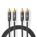 Nedis Stereo Audio Cable | 2x RCA Male | 2x RCA Male | Gold Plated | 2.00 m | Round | Grey / Gun Metal Grey | Cover Window Box