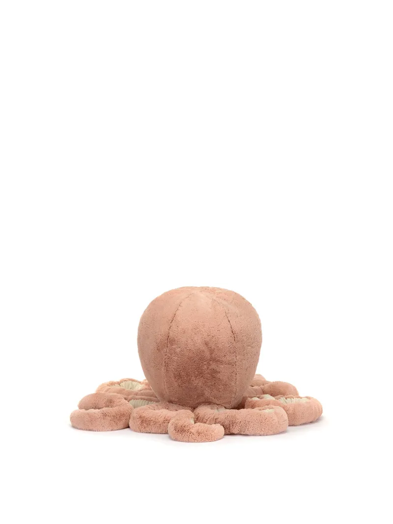 Experience the exquisiteness of Odell Octopus, a soft and stunning brick-red cephalopod, bursting with love and affection! With its bright, glossy eyes and eight elegant, curly arms beautifully accented with cordy fur, this ocean creature is renowned for giving the best hugs.