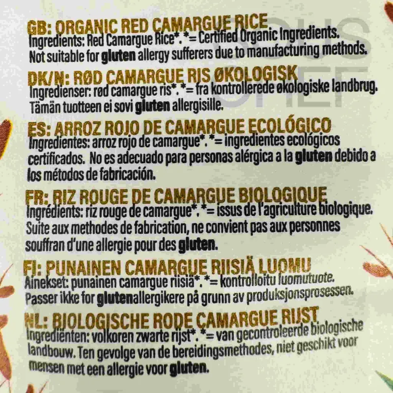 Product formulations and details may change. For the latest ingredients and allergen information always check product packaging prior to consumption. Ingredients: Organic wholegrain Camargue Red Rice.