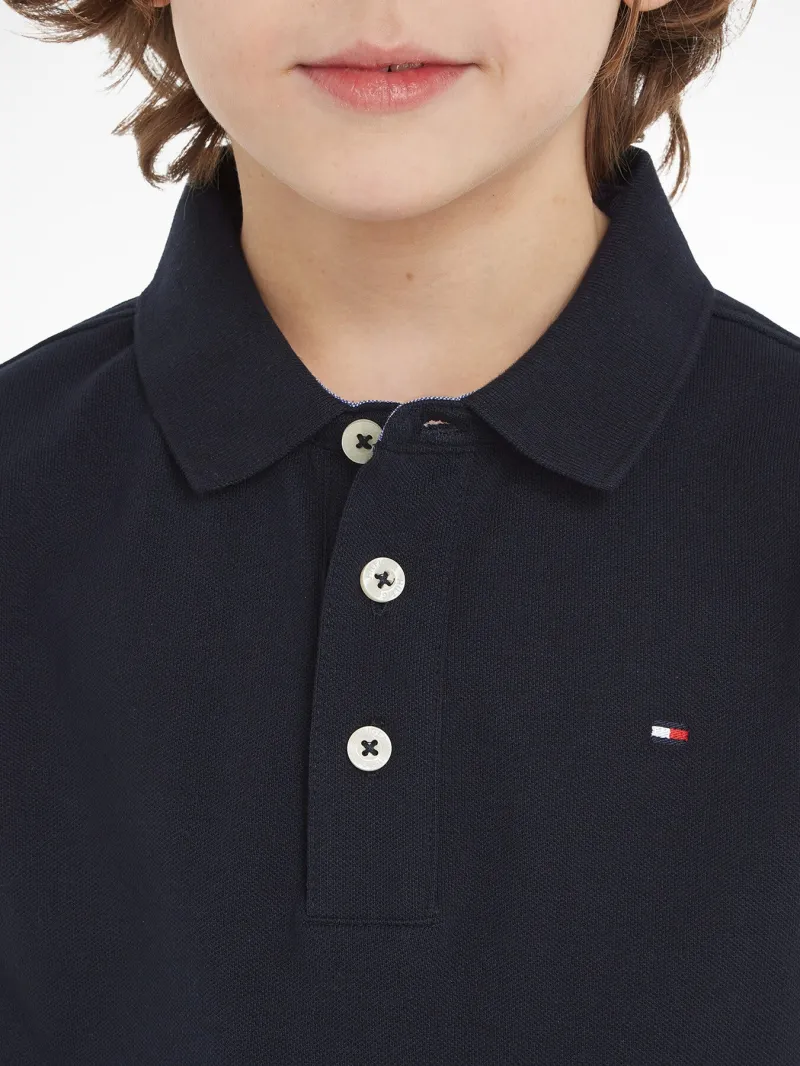 Stretch organic cotton. – Polo collar. – Three-button placket. – Rib-knit collar, cuffs and hem. – Signature tape inside neckline. – Tommy Hilfiger flag embroidery on chest