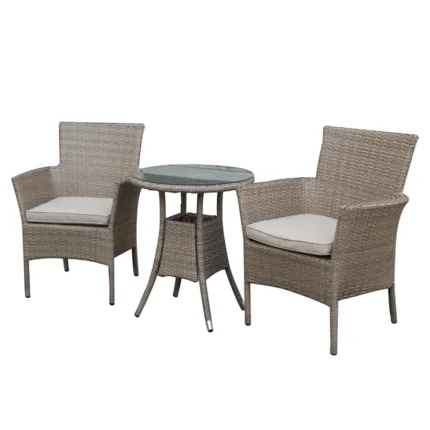 Avignon Garden Furniture Bistro Set Steel and Rattan Light Grey by Croft – 2 Seats