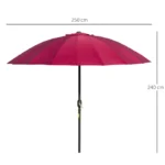 Outsunny 2.5m Shanghai Garden Parasol Umbrella with Crank & Tilt, Adjustable Outdoor Sun Shade, Red