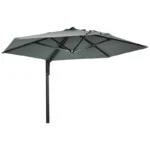 Like to read in the great outdoors? Enjoy picnics out in the summer breeze? Say goodbye to sunburns this summer with Outsunny 2.5 m parasol. Wall-mounted design makes it save space without sacrificing shade protection. Our patio umbrella offers enough shade at an ideal position that you control with its 180° rotating canopy. Made of polyester fabric and a sturdy aluminium frame for outdoor-ready . Take the hot tub umbrella home and it will provide soothing shade for you throughout the summer.