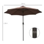 Outsunny 2.7m Garden 24 LED Light Parasol Solar Outdoor Tilt Sun Umbrella Patio Club Party Event Manual Sun Shade w/ Hand Crank and 8 Ribs, Brown