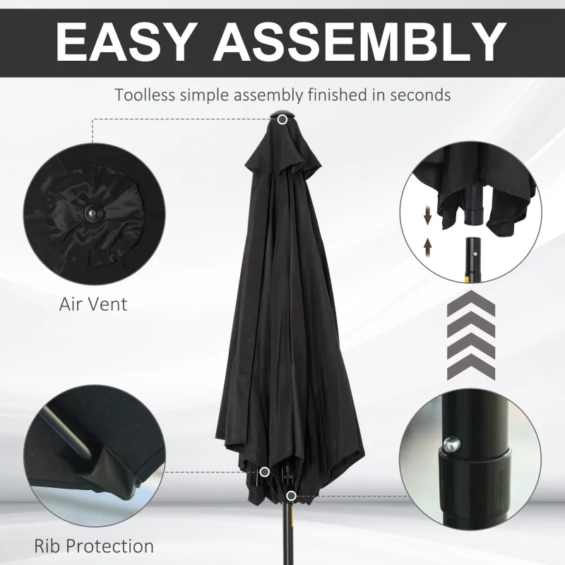 Outsunny 2.7M Garden Parasol Umbrella with Tilt and Crank, Outdoor Sun Parasol Sunshade Shelter with Aluminium Frame, Black