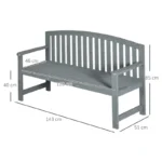 Outsunny 2 Seater Wooden Garden Bench with Armrest, Outdoor Furniture Chair for Park, Balcony, Grey