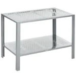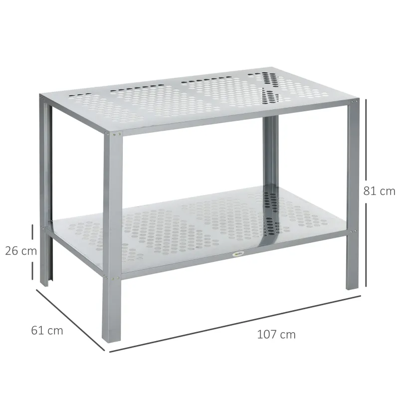 Outsunny 2-Tier Plant Stand, Corner Plant Shelf for Outdoor and Indoor Storage Organizer, Freestanding Flower Rack with Steel Frame, Mesh Board, Silver