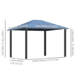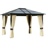 Outsunny 3 x 3.6m Polycarbonate Hardtop Gazebo with LED Solar Light and Aluminium Frame, Garden Pavilion with Mosquito Netting and Curtains