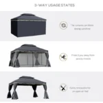 Outsunny 3x4m 2-Tier Gazebo Aluminium Garden Marquee Party Tent Black