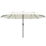 Outsunny 4.4m Double-Sided Sun Umbrella Patio Parasol Solar Lights Cream White