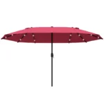 Outsunny 4.4m Double-Sided Sun Umbrella Patio Parasol Solar Lights Wine Red