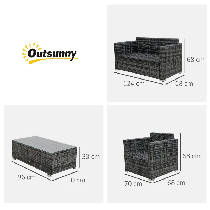 Outsunny 4 Pieces Wicker Steel Rattan Sofa Set Garden Chair Seat Furniture Patio Grey