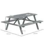 Outsunny 4 Seater Wooden Picnic Table Bench for Outdoor Garden or Patio with Parasol Cutout 150 cm Grey