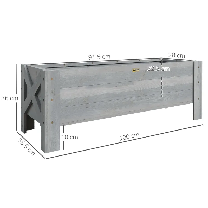 Outsunny 58L Garden Raised Bed Planter Grow Containers for Outdoor Patio Plant Flower Vegetable Pot Fir Wood, 100 x 36.5 x 36 cm, Grey