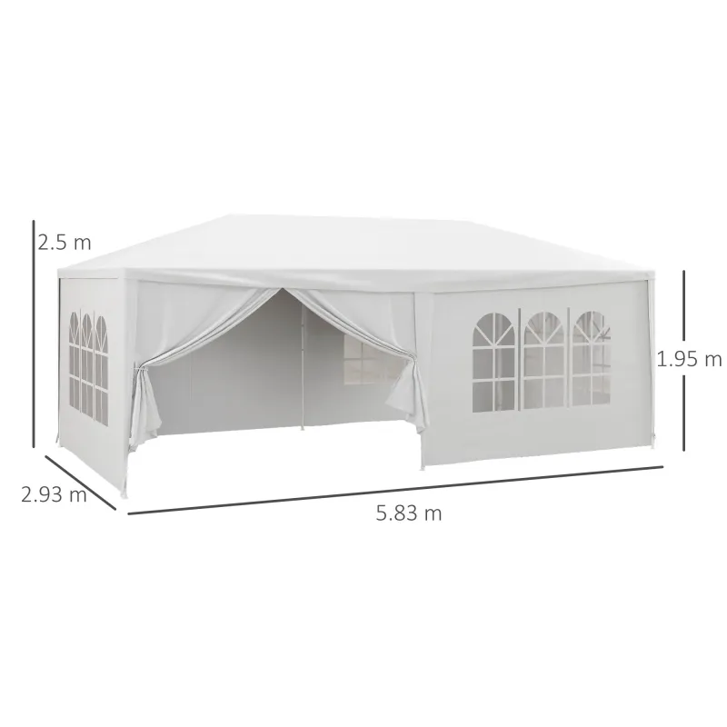 Outsunny 6 x 3 m Party Tent Wedding Gazebo Outdoor Waterproof PE Canopy Shade with 6 Removable Side Walls