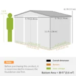 - Spacious storage: Lots of room for garden tools, equipment, furniture and outerwear in this large metal garden shed.