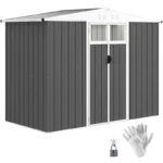 Discover the charm of tidiness with the Outsunny metal garden shed. Spaciously designed to house everything from bikes to garden tools, this garden shed features double doors for easy access and secure storage. Enjoy natural light with two transparent windows and keep the air fresh with four well-placed vents. Made from anti-UV, rust-resistant galvanised steel, it’s the stylish haven for all your outdoor essentials.