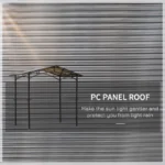 - Polycarbonate roof to protect underneath, sloped for water to roll down to the ground