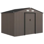 Outsunny 9 x 6ft Metal Garden Shed, Outdoor Storage Tool House with Ventilation Slots, Foundation Kit and Lockable Double Doors, Brown